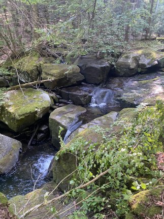 foot flume between two rocks. The stream then turns and
